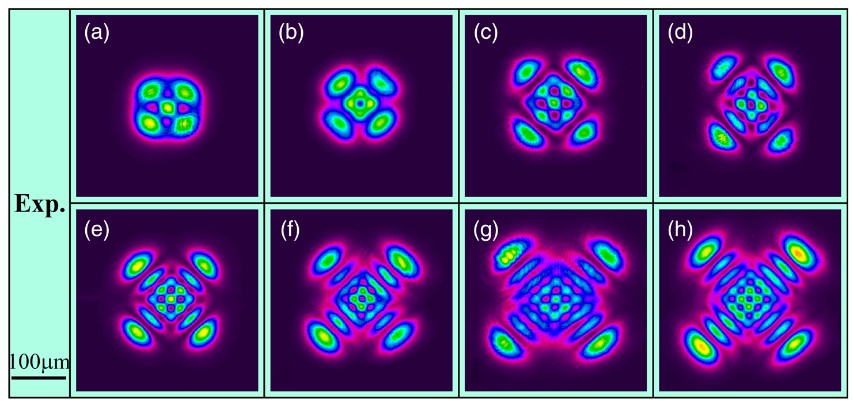 图3:实验得到的二维n×n拉曼涡旋阵列,n = 2,3,4,5